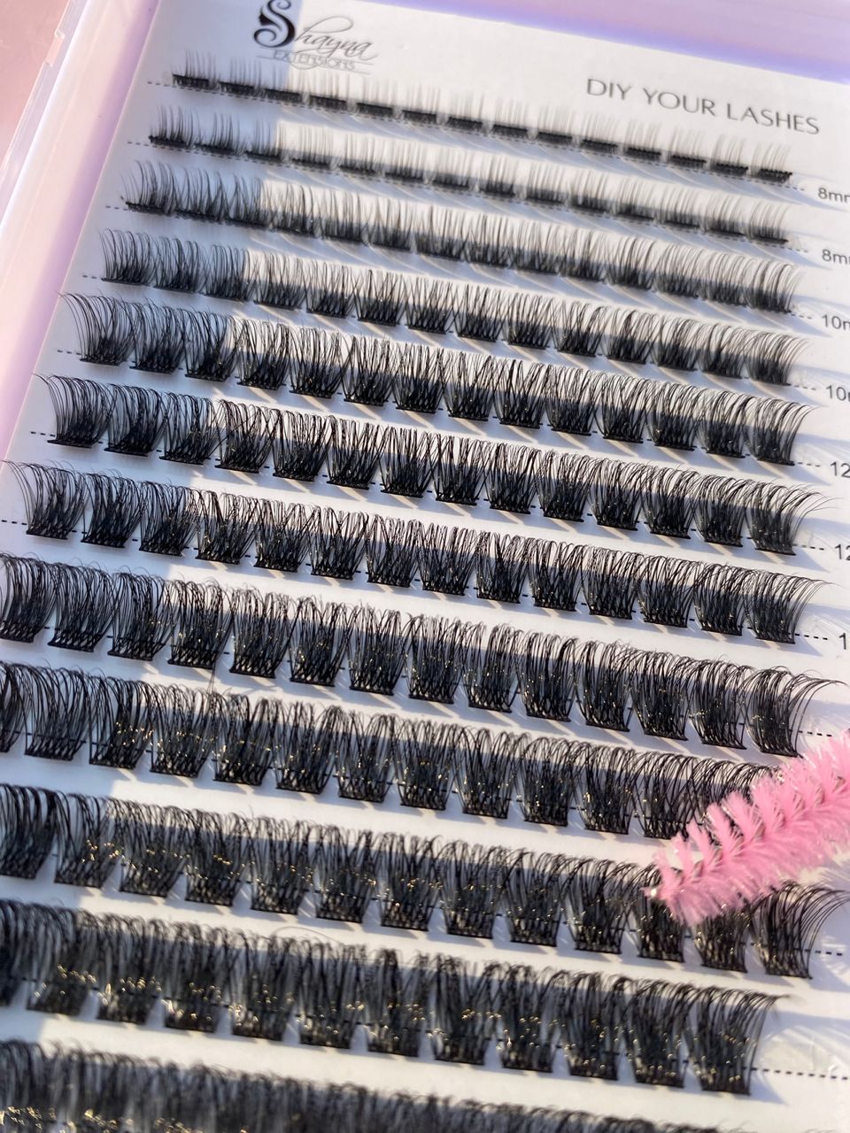 Our DIY lashes are pre-cut, lightweight lash clusters designed for under-lash application. Each cluster features multiple lash hairs secured at a tiny, flexible band, allowing you to build your perfect look, lash-by-lash.